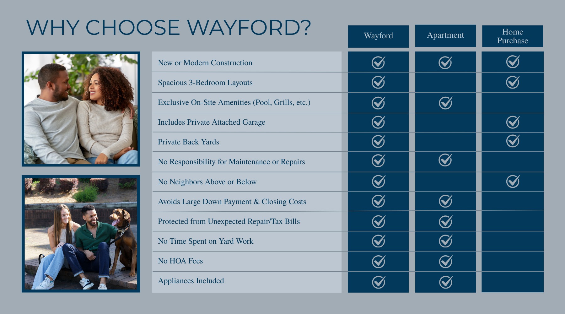 Wayford at Innovation Park offers unique, customized 2 and 3 bedroom townhomes for rent in Charlotte, NC. Driven by details, our spacious rental townhomes incorporate smart house features and thoughtful design. Benefit from the flexibility and maintenance-free lifestyle of leasing while enjoying the privacy and space of your dream home.